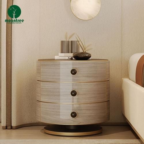 Introducing Moontree’s Luxury Round Nightstand, a showstopping piece designed for 5-star hotel suites and high-end residences. This iconic design features a sleek, three-drawer structure wrapped in a smooth light wood veneer, accented with polished gold metal trim and circular hardware. The gold detailing adds a luxurious, opulent touch, elevating the guest room to a premium level. The round shape eliminates sharp corners, ensuring safety and adding a soft, harmonious visual element. Each drawer operates smoothly with quiet soft-close hinges, prioritizing guest comfort. Built to commercial standards, it offers exceptional durability for long-term use in hospitality environments. The sturdy gold metal base provides stable support and enhances its upscale aesthetic. Fully customizable, you can select from various wood finishes, metal colors, and sizes to align with your hotel’s design vision. Moontree’s commitment to quality makes this round nightstand the perfect centerpiece for luxury hotel suites, resort villas, and exclusive hospitality projects.