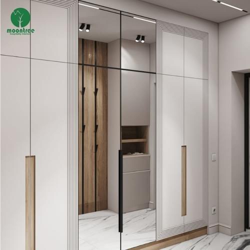 Modern Fluted Mirror Door Built-In Wardrobe for Luxury Hotels & Villas | Moontree