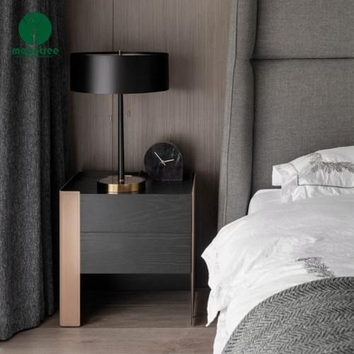 Embrace Italian luxury with Moontree’s Metal Edge Floating Nightstand, ideal for 5-star suites and luxury resorts. Its sleek floating design saves space and adds lightness, while metal edge detailing (available in gold, chrome, or black) brings opulence—true to Italian design. Crafted from high-quality dark oak and premium metal, it has a scratch-resistant finish that stays pristine with frequent use. The floating structure simplifies cleaning, and smooth soft-close drawers offer ample storage for guests’ items. Fully customizable to match your hotel’s decor, it boasts commercial-grade durability for high-traffic environments. This nightstand seamlessly integrates with luxury interiors, adding refinement and timeless elegance to any guest room.