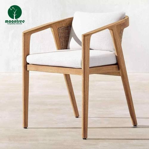 Elevate your dining space with our premium teak wood rattan dining chair, expertly crafted by Moontree Hospitality Interiors for both indoor and outdoor use. Designed for luxury hotels, resorts, restaurants, and modern homes, this solid teak chair combines timeless natural beauty with exceptional durability, making it the ultimate choice for commercial and residential dining projects.